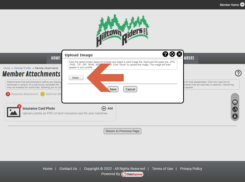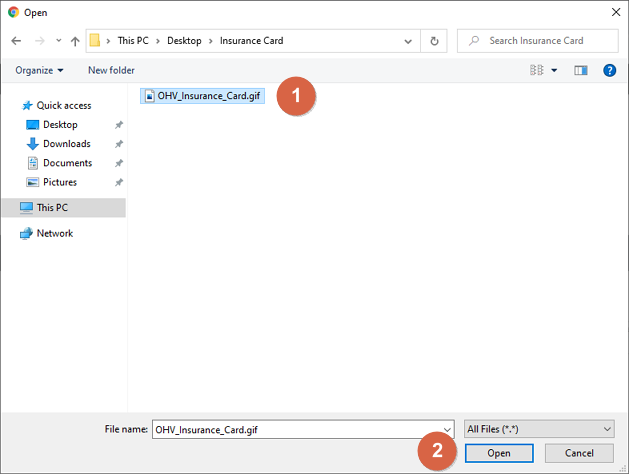 In the selection window, navigate to the folder that contains the insurance card and select the filename. Then click the Open button.